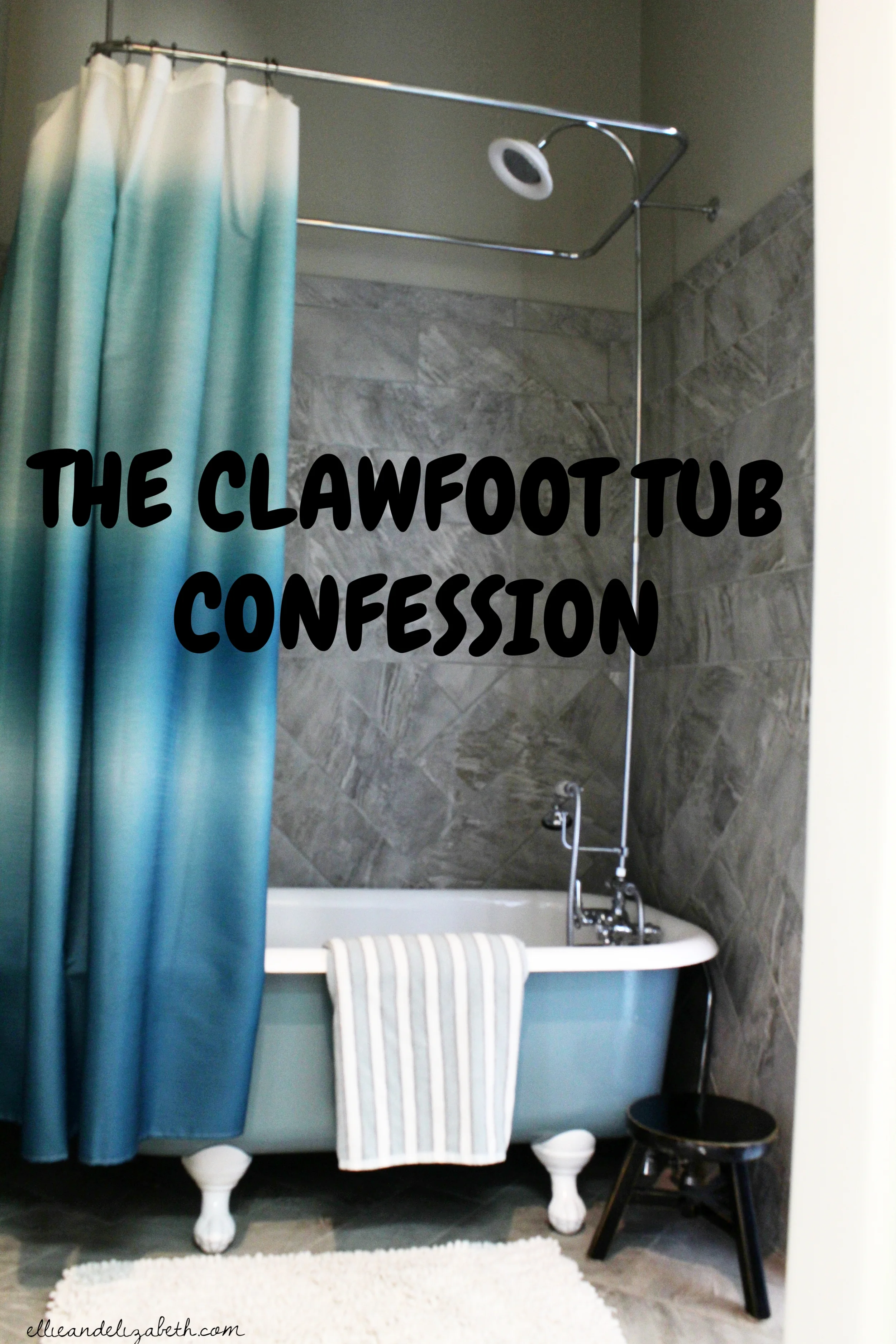 I know it's 'in' right now to leave windows blank with no curtains, but I feel like something around the windows warms up the space. Our issue is the windows are on the back side of the tub, so if we want to open and close the curtains, it's going to be a pain to reach. I'm thinking of doing some sort of remote control shade that's hidden by a cornice. I could have stationary curtains on either side if I wanted.